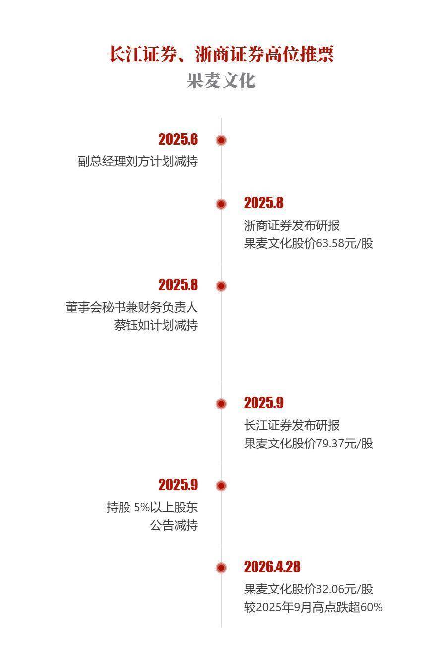 在前期股价大涨、高管已袒露减握策画的配景下,浙商证券、长江证券区分于2025年8月和9月发布研报,赐与果麦文化“买入”评级,但均未对鼓吹减握风险作充分指示。